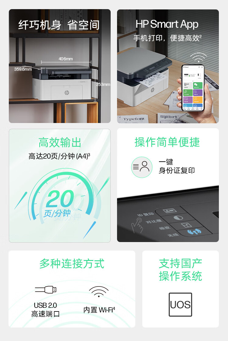惠普(HP)1136w 黑白激光打印机多功能家用办公打印机 复印扫描无线商用办公(136w升级版)